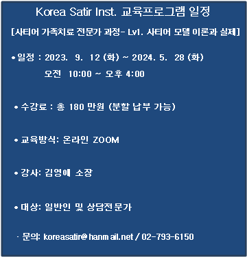 *한국사티어변형체계치료학회 부부가족상담전문가 자격증 취득 과정